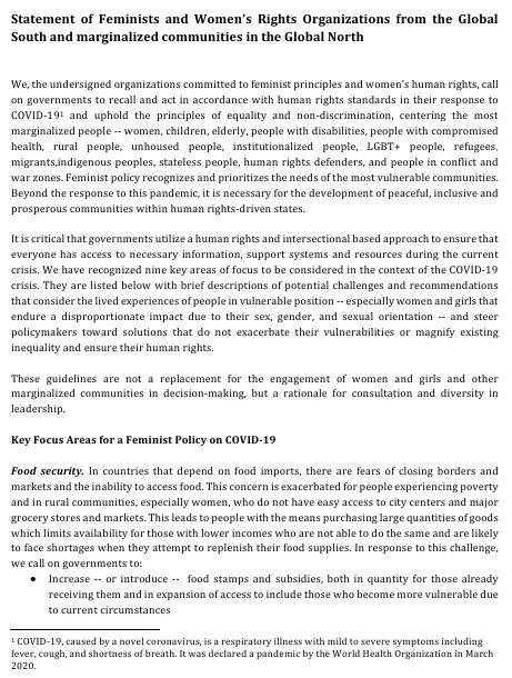 Statement of Feminists and Women’s Rights Organizations from the Global South and marginalized communities in the Global North