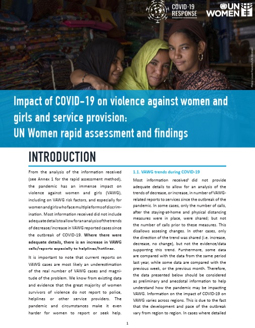 Impact of COVID-19 on violence against women and girls and service provision: UN Women rapid assessment and findings